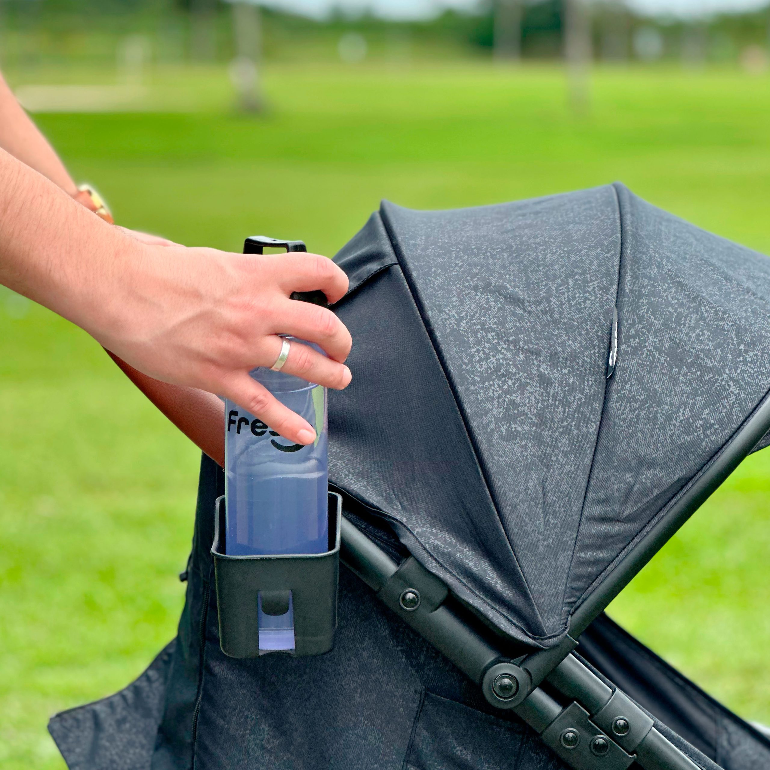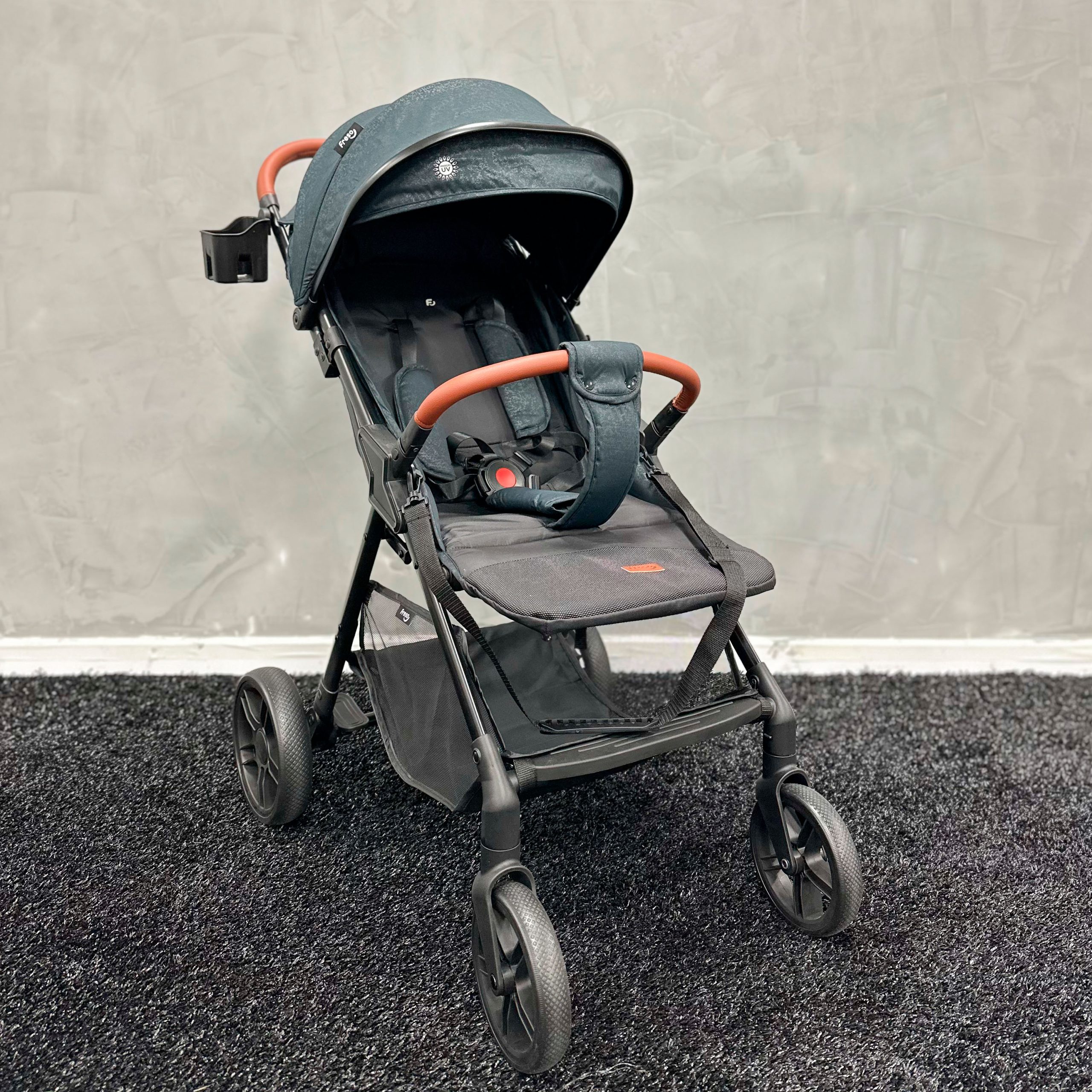 toldo com proteção UV e visor peek-a-boo com fechamento magnético protegem o bebê do sol e permitem acompanhar o pequeno durante o passeio. Além disso, o carrinho conta com cesto para compras, suporte para copo e alça de transporte, unindo praticidade e estilo.