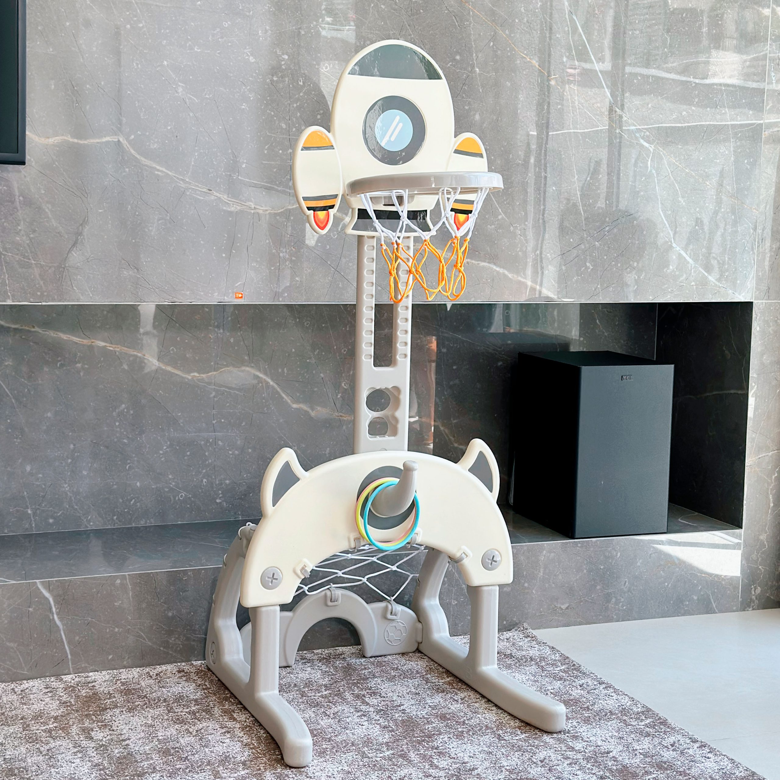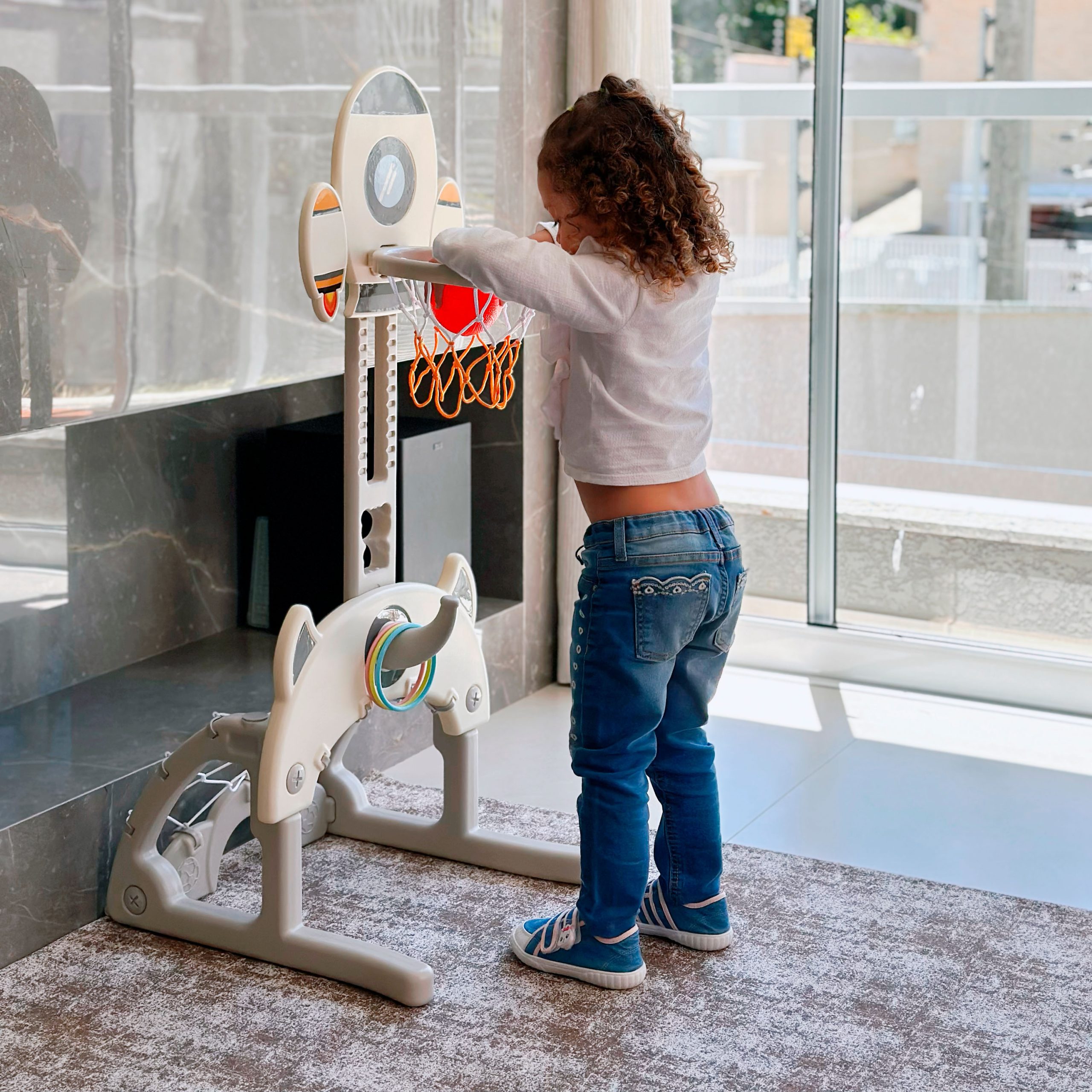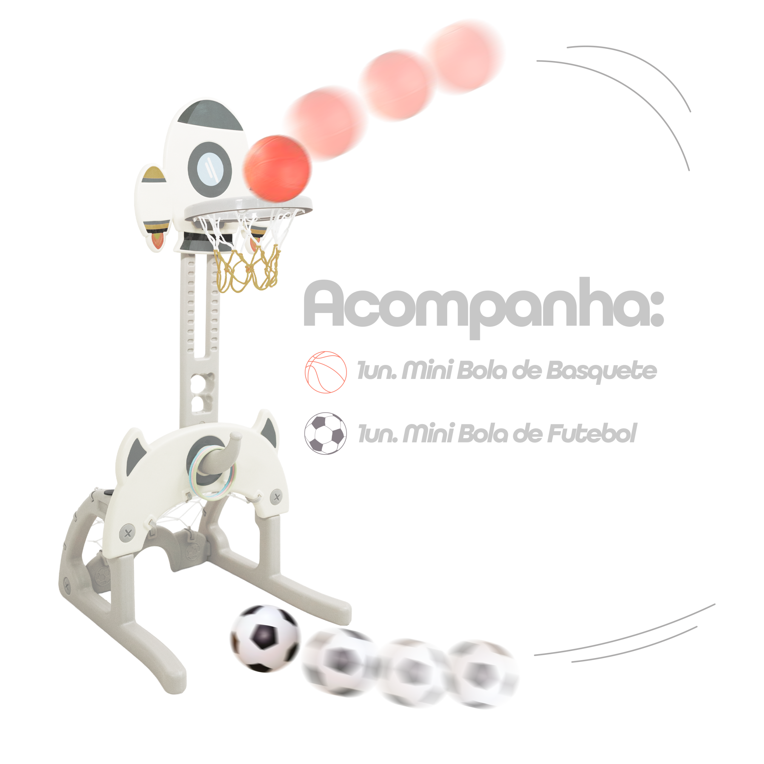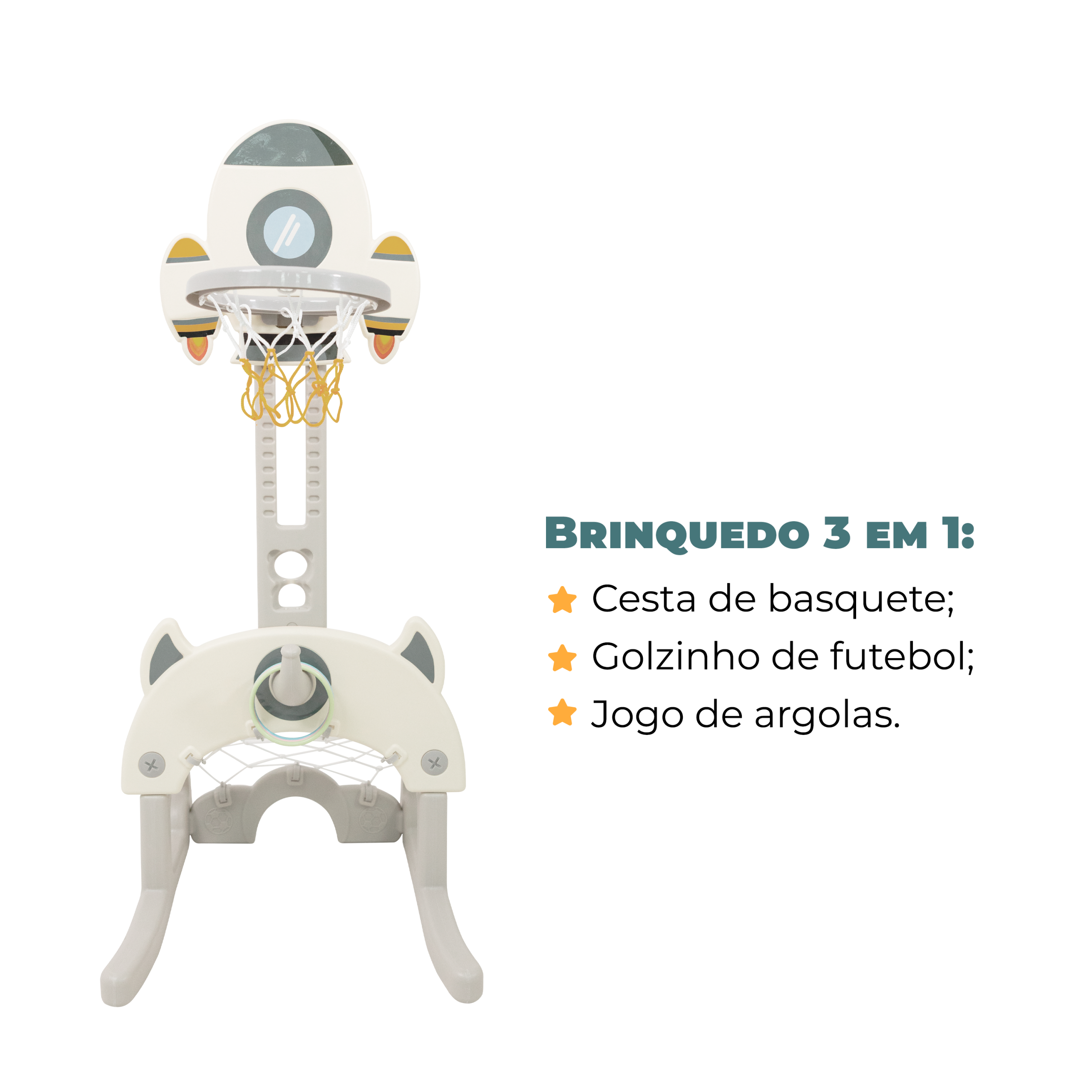 O Multi-Esporte Indoor Freso é o brinquedo ideal para estimular o movimento e a coordenação das crianças, mesmo em espaços pequenos. Com design compacto e multifuncional, ele reúne três brincadeiras em um só produto: futebol, basquete e jogo de argolas.